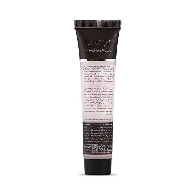 مقداری از پرایمر ام ان دی را برداشته و روی قسمت T صورت بمالید و بعد آن را روی کل صورت پخش نمایید. بعد از حدود 30 ثانیه زیرسازی آرایشتان را شروع کنید.