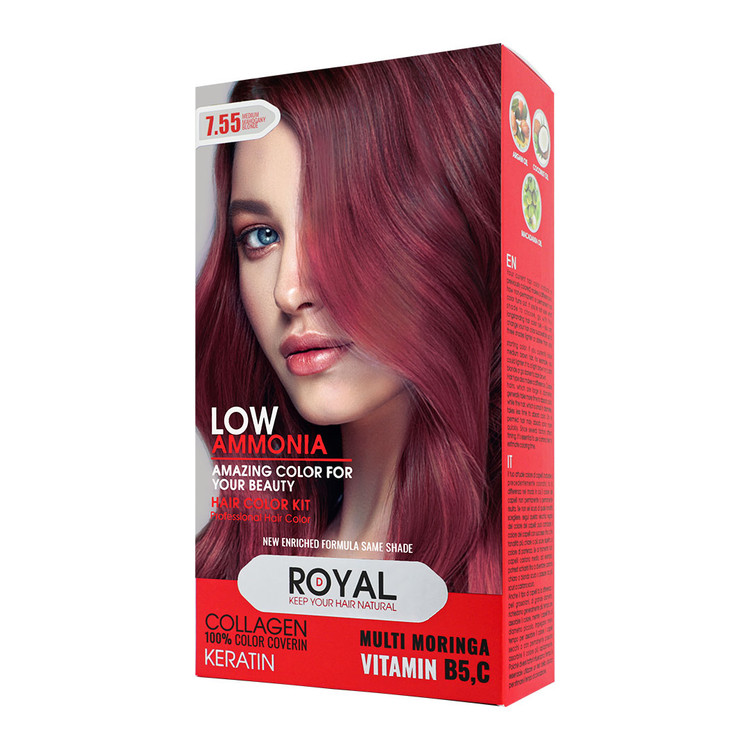 کیت رنگ مو بلوند ماهگونی متوسط رویال کد 7.55